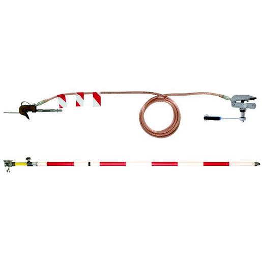 Erdungs- und Kurzschließvorrichtungsset (profilfrei) nach DIN VDE 0683-100 (EN/IEC 61230) zum Erden und Kurzschließen elektrischer Oberleitungen an der Arbeitsstelle nach DIN VDE 0105-100 (EN 50110). Inklusive Teleskop-Erdungsstange mit Seileinführung und Haken und einpolige Erdungs- und Kurzschließvorrichtung, 12 m lang, Ausführung Ratsche.
