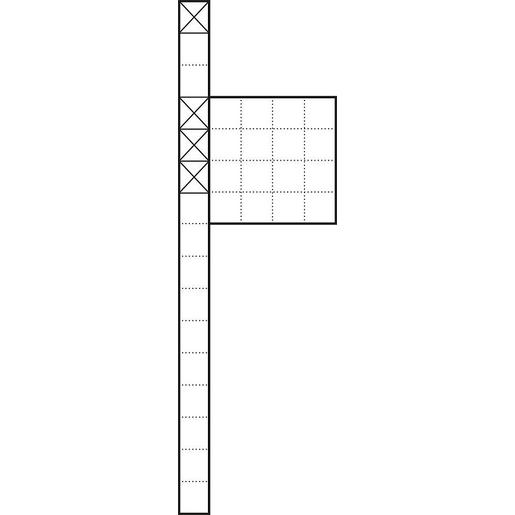 Freistehende Kommunikations-Stele mit einem Briefkasten-Gehäuse (rechts) zur Aufnahme eines Briefkasten- oder Ablagefachmoduls und 1 Funktionsmodul an der Spitze und 3 Funktionsmodulen im oberen Teil. Optimierte Einbauhöhe für Kamera oder Bewegungsmelder.