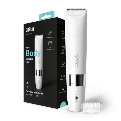 Ein speziell entwickelter elektrischer Körperrasierer mit Trimmeraufsatz für sie und ihn ? für eine schnelle, einfache und sanfte Haarentfernung, auch in empfindlichen Bereichen. Der Braun Mini-Trimmer rasiert präzise und ermöglicht eine genaue Kontrolle über die Länge Ihres Haars. Schnelle und sanfte Körperhaarrasur: Ganz egal wann und wo. Im Lieferumfang enthalten: 1x Mini-Rasierer 1x Trimmeraufsatz 1x Reinigungsbürste 1x AA Batterie