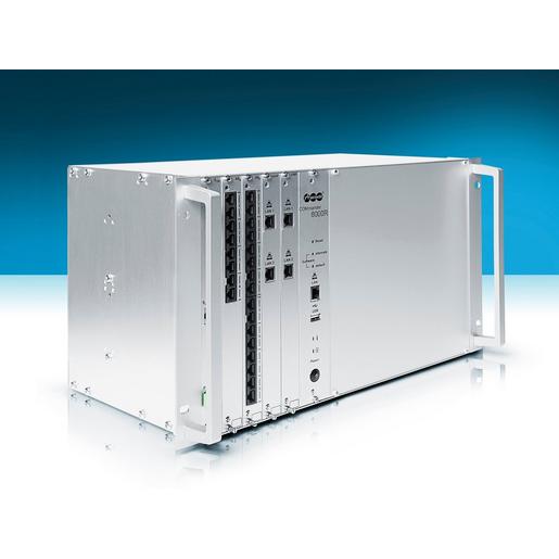 Vollmodularer Kommunikationsserver (ISDN, VoIP) mit max. 38 Amtkanälen, max. 112 Teilnehmer und 5 Modulsteckplätzen, im 19“-Gehäuse für Rackmontage.