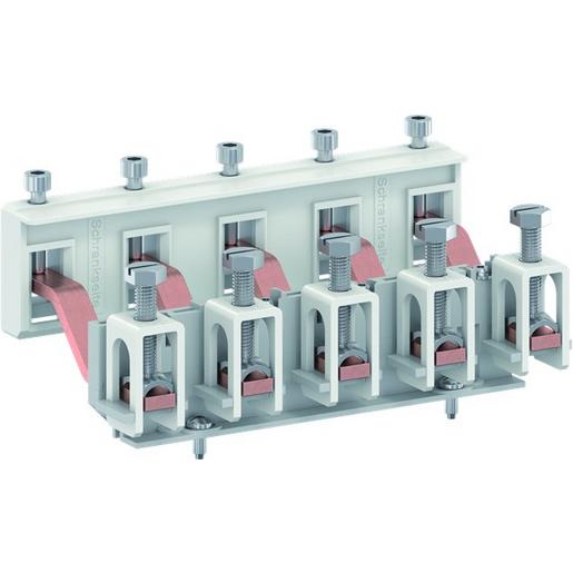 ComfortLine Sammelschienenanschlusssatz inkl. Cu 12 x 5 mm und Anschlussklemmen 95 mm² 5-polig. Passend für Kabeleinspeisegehäuse CZE220 links oder rechts am Schrank angebaut.