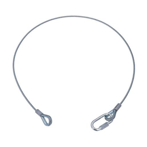 DeltaLUXX Fangseil mit Sicherungselement Länge: 100 cmDurchmesser: 4 mmBelastbarkeit: 15 kgEigenschaften:verzinktes Sicherungsseil nach DIN56927 aus Stahldrahtseil EN 12385beidseitig nach EN 13411-3 verpresste Kausche BF DIN 6899 RW 4in einer Kausche: Schnellverbindungsglied DIN 56926 – B – 90Öffnungsweite 7 mm mit Label