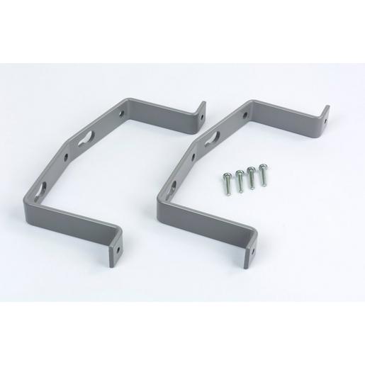 Wandhalterung für Heizlüfter Gehäusegröße A (3-9 kW), zur Befestigung des Heizlüfters an der Wand, grau lackiertes Metall.