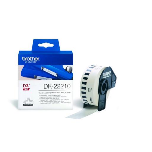 Für passende brother® Etikettendrucker der QL-Serie.? Rolle? endlos? Modell: DK-22210? Klebung: selbstklebend? Material: Papier? B x L: 29 mm x 30,48 m? Farbe: weiß