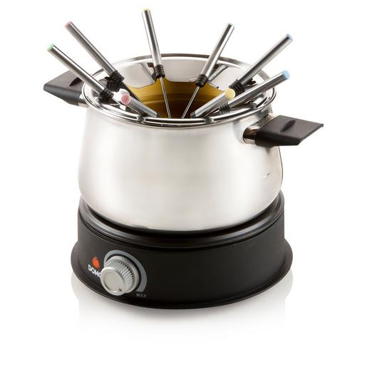 Edelstahlfondue mit Cool-Touch-Griffen Inhalt: 1,4 l Inklusive 8 Fonduegabeln aus Edelstahl mit unterschiedlicher Farbmarkierung Regulierbare Temperatur 230 V – 50 Hz – 1500 W