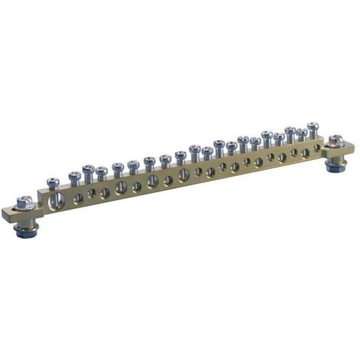 Erdungs- und Nullleiterschiene für die Verbindung von mehreren Erdungsleitern. Erdungs- und Nullleiterverteilerschiene, Messing EB20.