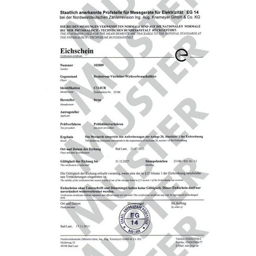 Eichschein für mechanische Stromzähler Eichschein für mechanische Zähler