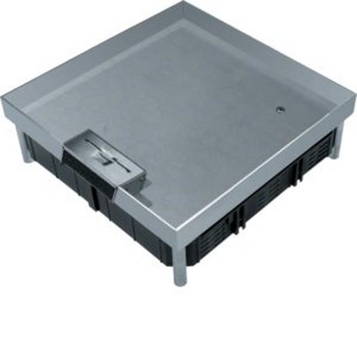 Nivb Edelstahlkassette Q12 für 12 Inst-geräte Ltg-auslass eckig Höhe i/a 23/28mm. Edelstahl-Kassette nach DIN EN 50085-1 und DIN EN 50085-2-2, nivellierbar, Gerätebecher stufenweise bis 18 mm absenkbar.