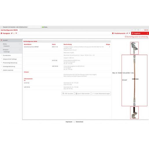 Einpolige Erdungs- und Kurzschließvorrichtung nach DIN VDE 0683-100 (EN/IEC 61230), Seilquerschnitt: 120 mm², Maximaler Kurzschlussstrom / -dauer: 33,5 kA / 0,5 s – 2,5 Länge A=5000 mm phasenseitig bestückt mit 1x Universalklemme Ø20/25 mm, SQ mit Art.-Nr. 773 234 und erdseitig bestückt mit 1x Universalklemme Ø25/30 mm, mit Handgriff und Art.-Nr. 774 330