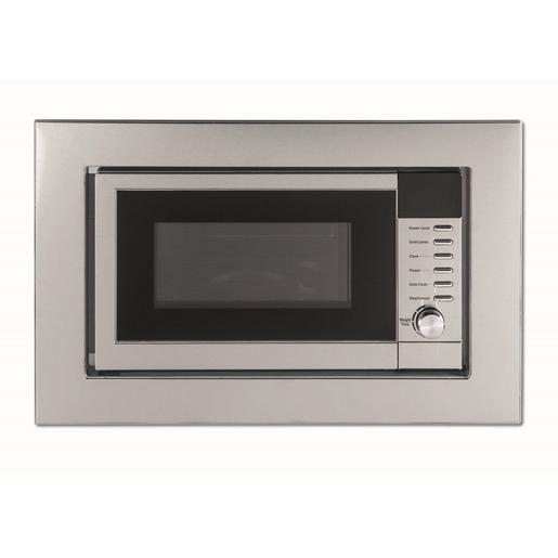 20 l Einbaumikrowelle mit Grill, Edelstahl – mit LED Display, 95 Timer digital – 800 Mikrowelle, 6 Energiestufen – 1000 W Grill – 9 Automatikprogramme: Milch/Kaffee, Reis, Pasta, Kartoffeln, Automatisches Aufwärmen, Fisch, Hähnchen, Rind-/Lamm Fleisch, Schaschlik – Drehtür, Türanschlag links – HxBxT 372 x 595 x 368 mm – Containermenge 912 Stück