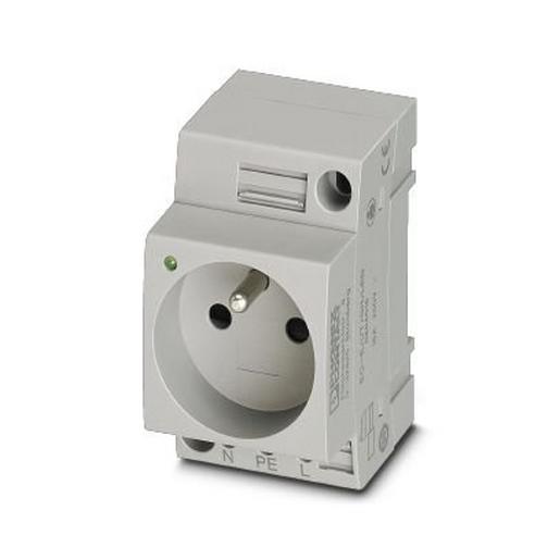 Steckdose, Steckgesicht Typ E, Schraubanschluss, für Frankreich und weitere Länder, mit erweitertem Berührschutz / Shutter, Leuchtanzeige, grau,