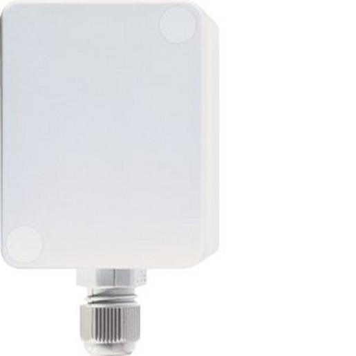 Außen-Funkrepeater 1- und 2-Level, 60x46mm, 30mm tief. Stand-by-Verlust nur 0,6 Watt. Dieser Repeater ist nur erforderlich, wenn die baulichen Gegebenheiten einen ungestörten Empfang verhindern, oder die Entfernung zwischen Funktaster und Empfänger zu groß ist. Ab Werk ist der 1-Level-Modus aktiviert. Es werden nur die Signale von Sensoren und Aktoren empfangen, geprüft und mit voller Sendeleistung weiter gesendet. Funksignale anderer Repeater werden ignoriert, um die Datenmenge zu reduzieren. Durch Abnehmen des Deckels (dazu die zwei Schrauben auf der Vorderseite lösen) und Umstecken des Jumpers rechtsbündig wird auf den 2-Level-Modus umgeschaltet. Nun werden auch die Funksignale eines anderen 1-Level-Repeaters verarbeitet. Ein Signal kann damit maximal 2-mal empfangen und verstärkt werden. Eine rote LED zeigt alle wahrgenommenen Funksignale durch kurzes Aufblinken an. Funkrepeater müssen nicht eingelernt werden. Sie empfangen und verstärken die Signale von allen Funksensoren in ihrem Empfangsbereich. Für den wasserdichten Netzanschluss befindet sich auf der Unterseite eine Verschraubung M12. Die zulässige Umgebungstemperatur -20gradC bis +55gradC. Montage durch Anschrauben.