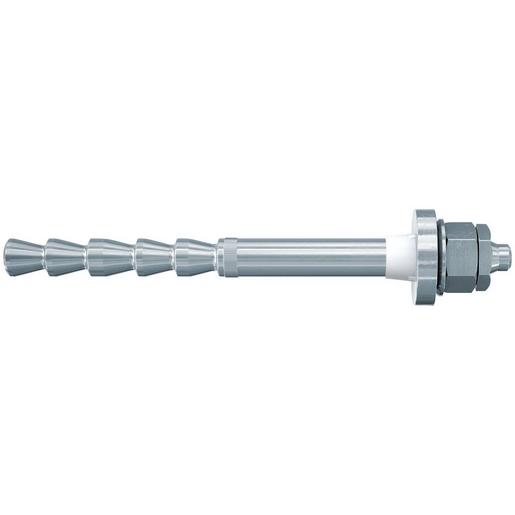 Der fischer Highbond-Anker dynamic FHB-A dyn wird aus galvanisch verzinktem Stahl hergestellt. Der kraftkontrolliert spreizende Verbundanker wird mit dem Highbond-Spezialmörtel FIS HB verarbeitet. Beim Anziehen der Sechskantmutter werden die Konen der Ankerstange in die Mörtelschale gezogen, die sich gegen die Bohrlochwand verspannt. Der Injektionsmörtel FIS HB schließt beim Setzvorgang den Ringspalt im Anbauteil und garantiert eine optimale Lastverteilung. Dadurch können dynamische Schwell- und Wechsellasten aufgenommen werden. Der fischer Highbond-Anker dynamic FHB-A dyn ist ideal geeignet, um im Innenbereich Führungsschienen von Aufzügen, Industrieroboter oder Portal- und Deckenlaufkräne zu befestigen.