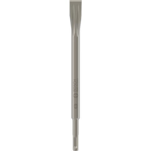 Der Flachmeißel mit SDS plus verklemmt weniger und kommt schneller voran als herkömmliche Flachmeißel. Die selbstnachschärfenden Verstärkungsrippen erzeugen im Material nicht nur seitliche sondern auch senkrechte Risse. Dies bewirkt einen höheren Materialabtrag und verhindert das Verklemmen des Meißels. Auch ermöglicht die Vipernzahnung der Schneidekante schnelleres Vorankommen. Der Meißel ist bestimmt für abschließende Anpassungsarbeiten in Beton und Baustein, für das Einreißen oder Entfernen von Wänden sowie für das Wiederherstellen von Fugen und das Freilegen von Armierungen. Der Flachmeißel mit SDS plus besitzt eine 30 % höhere Lebensdauer und eine 15 % höhere Materialabtragsrate als herkömmliche Meißel.