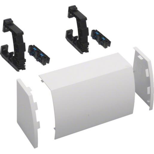 Kabelrangierkanal für Feldverteiler,3feldig,RAL9010. Elektro-Installationskanal-System Rangierkanal RK aus Kunststoff als Übergang zwischen verlegten Leitungen oder Installationskanälen und Verteilerschränke. Rangierkanal Set bestehend aus Kanalprofil mit Sollbruchstellen zum Ausklinken für Installationskanäle für Tiefe 40, 50 und 60 mm. Zwei Profilhalter für Schränke bis Feldbreite 800 mm sowie drei Profilhaltern bis Feldbreite 1300 mm. Aufsteckbare Endkappen für links und rechts sind zu verschließen.