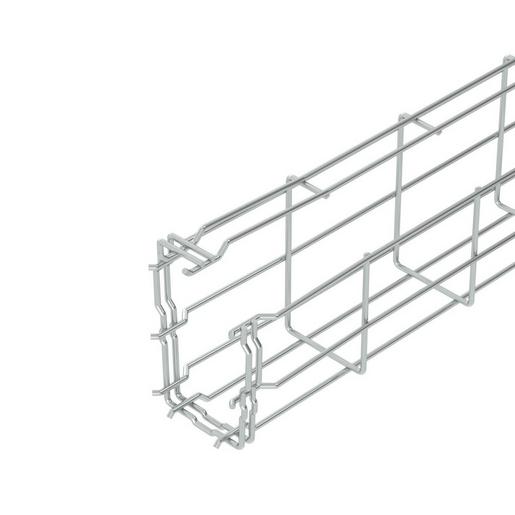 Gitterrinne in G-Form aus punktgeschweißten Stahldrähten mit unterschiedlichen Seitenhöhen und Breiten. Direkte Wand- und Deckenmontage möglich. Belastungsangaben zu den unterschiedlichen Verlegearten sind auf Anfrage erhältlich.