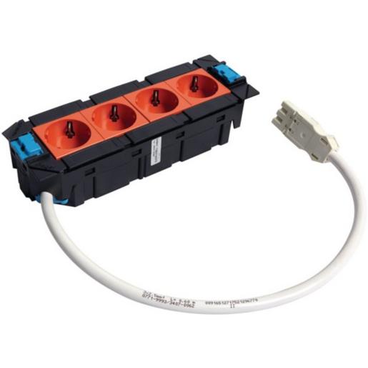 Gerätebecher mit Steckdosen 4xorange Wago Leitung 0,5m 3×2,5mm². Gerätebecher anschlussfertig, bestückt mit Schutzkontaktsteckdosen.