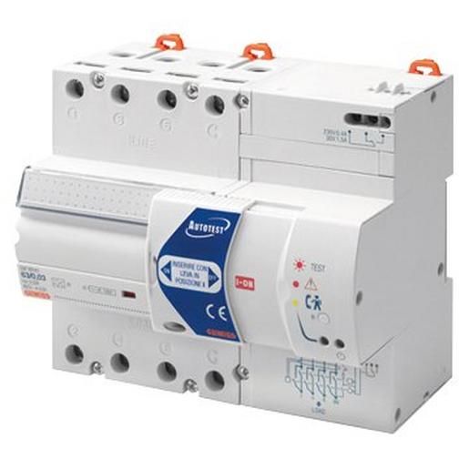 Der Autotest Fehlerstrom- Schutzschalter (RCCB) fuehrt in regelmaessigen Zeitabstaenden einen automatischen Selbsttest (Autotest) durch. Der Fehlerstrom- Schutzschalter wird bei diesem Test komplett betaetigt, ohne die Spannungsversorgung der Anlage zu unterbrechen. LED’s und ein Hilfskontakt signalisieren die Betriebszustaende. Der Autotest kann durch einen einfachen Schaltschieber ein oder ausgeschaltet werden. Anschluss (max): 35qmm mit isoliertem Untersteckschutz, Einspeisung oben. Kompatibel zum BUS Modul.