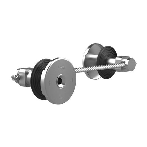 mit flexiblem Stahlseil, zur in der Höhen- und Seitenlage versetzten Positionierung von Erdungsanschlüssen. Armierungsanschlussoptional durch Kreuzklemme möglich, beidseitiges wasserdichtes Anschlussgewinde, Betonieren in mehreren Abschnitten. Eigenschaften:patentierte Verdrehsicherung durch spezielle Kontur der Kontaktscheibe