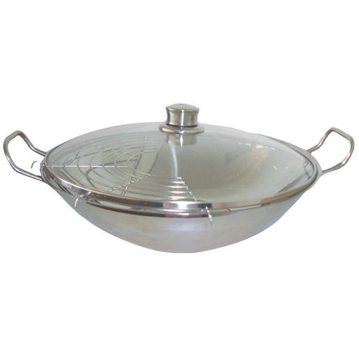 mit Glasdeckel und Abtropfgitter Induktionsgeeignet Durchmesser Boden: 17 cm Durchmesser oberer Pfannenrand: 35 cm Material: Hochwertiger Edelstahl, rostfrei Spülmaschinengeignet