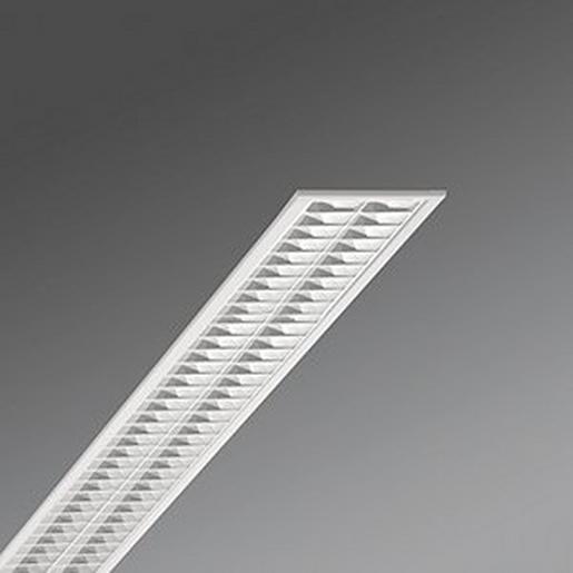 Einbauleuchte Stahlblechgehäuse geeignet für ausgeschnittene Decken und Paneeldecken vorbereitet zum Befestigen von Stirnseiten oder zur Montage im Lichtband weiß beschichtet, ähnlich RAL 9016 Gehäusefarbe verkehrsweiß RAL 9016 Lichtverteilung direkt strahlend mittels reflexionsverstärktem Aluminium-Parabolraster seidenmatt mit Niederquerschnitts-Lamellen, Lichtreflexionsgrad 97%, für Bildschirmarbeitsplätze, 65° < 1500 cd/m² rundumentblendet nach aktueller Norm DIN-EN 12464-1, selbstrastend bei Lichtbandmontage Raster optisch durchlaufend Elektrischer Anschluss und Anschluss der Steuerleitung über 5-polige Anschlussklemme in Steckkontakt-Technik. Treiber integriert. Benötigtes Zubehör: Stirnseiten und Universalbefestigungsbügel UBD für ausgeschnittene Decken bzw. WSPHL für Paneeldecken, bitte separat bestellen. Abmessungen LxBxH/DxH (mm): 1176 x 136 x 76 Bestückung: Leuchtmittel integriert: LED, Lichtfarbe 840/neutralweiß (4000K), Farbwiedergabe Ra>80 Leuchtmittellebensdauer 50000h L80/B10 Betriebsgerät: EVG multi DALI (1 Stück) Systemleistung (W): 69 Energieeffizienzklasse: A+ Prüfzeichen: IP 20, Schutzklasse I, BAP 65° < 1000, F, Indoor, CE