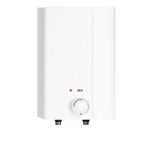 AEG offener Kleinspeicher Hoz 5 Basis, 2 kW, 230 V, weiß Kleinspeicher, Inhalt 5 Liter für Übertischmontage. Stufenlose Temperaturwahl von ca. 35 °C bis 85 °C. Durch Ziehen des Netzsteckers rücksetzbarer Sicherheitstemperaturbegrenzer. Bereitschaftsstromverbrauch nur 0,27 kWh/24h. Anschlusskabel mit Schukostecker, ca. 0,6 m Qualitäts- und Sicherheitszeichen: CE-Zeichen, VDE-/ GS-Zeichen, Funkschutzzeichen / EMV. Anschlussspannung : 1/N/PE~230 V 50 Hz Anschlussleistung : 2,0 kW Bereitschaftsstromverbrauch : 0,27 kWh/24h Temperaturwahl : ca. 35 – 85°C Temperatur-Wählknebel Begrenzbar auf : 45/55/65°C Schutzart : IP 24 D Abmessungen H/B/T : 415/252/215 mm Wasseranschlüsse (Messing) : 1/2″ Gewicht mit Wasserfüllung : 8,2 kg