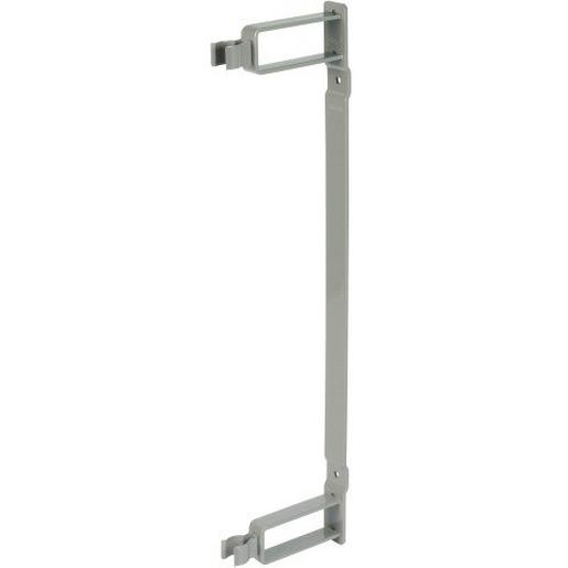 Haltevorrichtung für Spannungsprüfer und Erdungsstange beliebiger Länge. Lochabstand 390 mm, Bohrungen Ø7 mm für einfache Wandmontage.