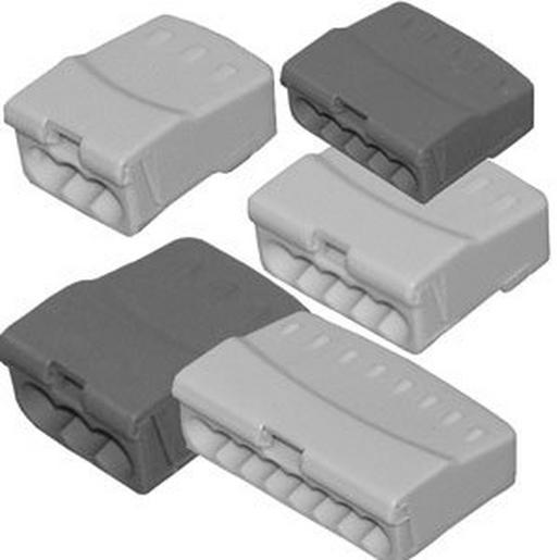 DIN EN 60 998/DIN EN 60 999, zur Verbindung eindrähtig massiver Leiter, Isolierteil: Polyamid, halogenfrei, 2 gegenüberliegende Prüflöcher. PE = 100