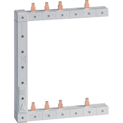 Phasenschiene senkrecht 63A links L1N-L2N-L3N zu L1N-L2N-L3N 125mm 2-reihig. Senkrechte Phasenschienen zum Verteilen der Haupteinspeisung auf mehrere Hutschienen. Durch kompakte Bauform und optimierte Installationsposition vergrößert sich der Installationsraum besonders für die Installation der Endstromkreise.