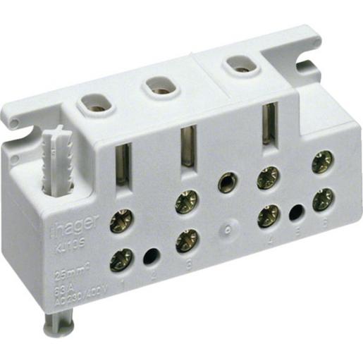 Zählersteckklemme,universZ,Wechselstrom 63 A, sperrbar, mit TRE-Anschlussklemmen. Zählersteckklemme nach DIN VDE 0603-3, Passend für Elektrizitätszähler nach DIN 43857 für den schnellen und sicheren Wechsel von Elektrizitätszählern, Nennstrom: 63A 1-polig, Mit 2. Anschluss für N-Leiter, 1 Steuerleitungsklemme pro Phase, Klemmenquerschnitt Hauptleitung bis 25mm², Klemmenquerschnitt Steuerleitung bis 6mm², Farbe: RAL 9010, Maße (LxBxH)= 90x40x32