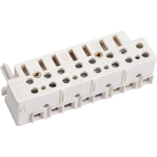 Zählersteckklemme,universZ,Drehstrom 63 A,sperrbar,mit TRE-Anschlussklemmen. Zählersteckklemme nach DIN VDE 0603-3, Passend für Elektrizitätszähler nach DIN 43857, für den schnellen und sicheren Wechsel von Elektrizitätszählern, Nennstrom: 63A 3-polig, Mit 2. Anschluss für N-Leiter, 1 Steuerleitungsklemme pro Phase, Klemmenquerschnitt Hauptleitung bis 25mm², Klemmenquerschnitt Steuerleitung bis 6mm², Farbe: RAL 9010, Maße (LxBxH)= 130x40x32