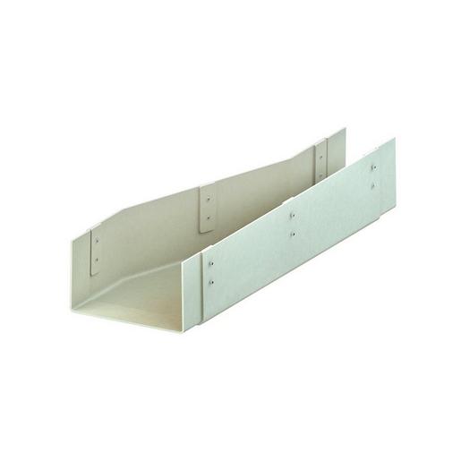 GFK-Reduzierung, rechts, gepresst, mit ungelochten Seitenholmen und angeformtem Verbinder, zur Reduzierung von durchlaufenden Kabelrinnen, 100 mm Reduzierung zur rechten Seite, anteilmäßiges Befestigungszubehör bitte gesondert bestellen, halogenfrei. Bei der Montage ist darauf zu achten, dass die Reduzierung an jedem Kabelrinnenzugang mit Auslegern unterstützt wird. Um eine ordnungsgemäße Montage zu gewährleisten, müssen die Verbinder an jedem Kabelrinnenzugang mit 2 FKM 6X16 E4 verschraubt sein (bitte gesondert bestellen). Artikel auch in …AC (besonders haltbares Acrylharz) lieferbar. Verwendung für : GFK-Kabelrinne KK 110… GFK-Kabelrinne KKL 110… Abmessungen (ca. Maße) H x B : 110 x 300 mm Länge L : 500 mm Reduzierungsmaß : B – 100 mm Werkstoff : UP-GF (glasfaserverstärkter Polyester) Farbton : kieselgrau RAL : 7032 (ähnlich)