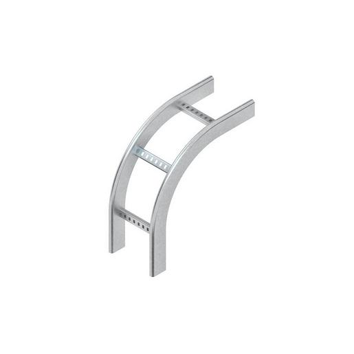 Fallstück 90°, Seitenholme aus Hohlprofilen, mit nach unten offenen eingeschweißten Sprossen aus C-Profil mit 16 mm Schlitzweite und durchgehender Lochperforation, zur Herstellung von vertikalen 90° Gefällen. Stoßstellenverbinder KRLV 60 F bitte separat bestellen. für Allround Kabelleiter : KRC… Abmessungen (ca. Maße) H x B : 60 x 100 mm Abmessungen außen : 450 mm Innenholmradius R : 240 mm Werkstoff : Stahl, tauchfeuerverzinkt nach DIN EN ISO 1461
