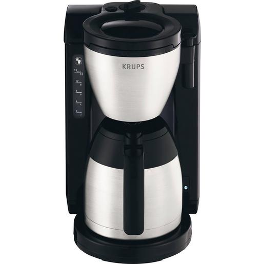 Thermo-Kaffeemaschine, Kapazität: 10 große bis 15 kleine Tassen (1,25L), 1.200 Watt, bis zu 25 % schneller für einen heißen Kaffee, „Aroma-Selector“: Je nach Einstellung des Aroma-Schalters kann die Stärke (stark bis schwach) des Kaffees reguliert werden. Edelstahl-Thermoskanne: Warmhaltefunktion bis zu 4 Stunden bei 65 °C, automatische Öffnung des Filterhalters bei Knopfdruck, herausnehmbarer Filter, Tropf-Stopp-System, Ein-/Ausschalter mit Kontrollleuchte, Wasserstandanzeige mit transparentem Fenster, verriegelbarer Deckel mit Tropfschutz für einfaches Ausgießen, automatische Abschaltung