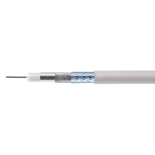 LCD 130A+ Abrollbox 250 mKoaxialkabel 6,9 mm, Farbe weiß, halogenfrei,Schirm.-Kasse A++, typ. 130 dB, Folie verklebt, Metermark.Dämpfung/100 m: 18 dB (860 MHz), 29,9 dB (2150 MHz)Innenleiter: 1,13 mm Cu, Isolat.: 4,6 mm Cell-PE,Aussenleiter: Al-Folie verklebt + Al-Geflecht Mantel 6,9 mm,Brandklasse nach BauPVO EN 50575: B2ca s1a d0 a1