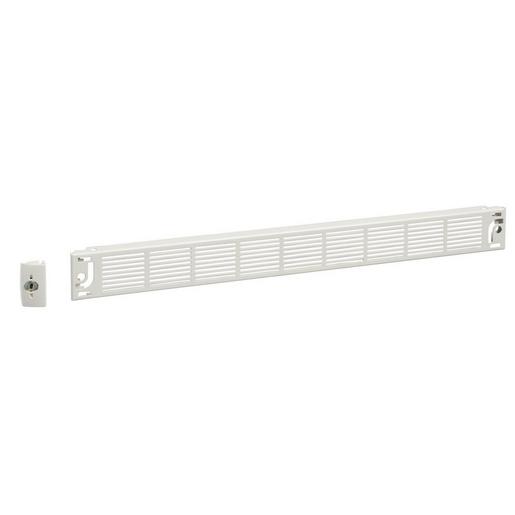 PrismaSeT P. Frontplatte belüftet mit einer Belüftungsöffnung von 80 cm² mit Schutzart IP30, mit einer Höhe von 1 Moduleinheit für Schaltschränke mit einer Breite von 650 mm. Pulverbeschichtet in RAL9003 struktur.