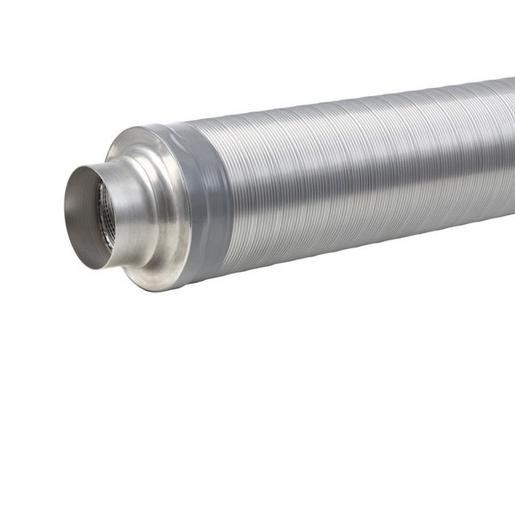 Der Schalldämpfer besteht aus einem Aluflex-Außenrohr, einem perforierten Aluflex-Innenrohr und 2 Anschlussenden mit Nippelmaß. ? Der Zwischenraum ist mit schallabsorbierendem Dämmmaterial gefüllt, ein Glasvlies zwischen Innenrohr und Isolierung schützt den Luftstrom.