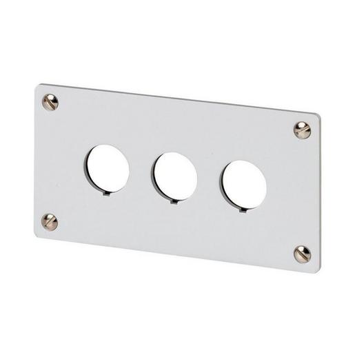 Einbauplatte, Einbaustellen: 3, Schutzart: IP65, Farbe grau, Farbe RAL-Wert: RAL 7035, Anbindung an SmartWire-DT: nein, bei senkrechter Anordnung keine Tastenzusatzschilder möglich, Schutzart gilt nur in Verbindung mit einem entsprechenden gehäuse und bei fachgerechter Montage, Aluminium hell eloxiert, einschließlich M22-XE?