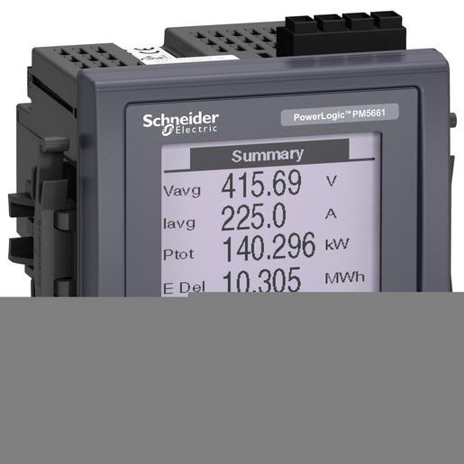 Das PowerLogic PM5661 ist ein Universalmessgerät für den Fronteinbau (96 mm x 96 mm) mit vollgraphischer und hinterleuchteter LCD Anzeige und verfügt über eine zusätzliche MID Zertifizierung. Das Messgerät bietet eine Genauigkeit der Klasse 0,2s gemäß der Norm IEC 62053-22 und 128 Abtastungen pro Zyklus. Das Messgerät misst Energie, Wirk- und Blindleistung, Spannung, Strom, Frequenz, Leistungsfaktor und bis zur 63. Oberschwingung. Mit 4 Quadranten Energiemessung. 1,1 MegaBytes Speicher für bis zu 14 wählbare Parameter mit konfigurierbarem Intervall und Dauer. Dieses Messgerät verfügt auch über eine direkte Überwachung des Neutralleiters und eine Differenzstromüberwachung mit Fehlerstromberechnung. Das Gerät funktioniert in einem 50Hz oder 60Hz Netz und akzeptiert eine Versorgungsspannung von 100 bis 480 VAC und 125 bis 250 VDC. Der Bemessungsstrom dieses Messgerätes beträgt 1 A oder 5 A und unterstützt Konfigurationen mit einer Phase und Neutralleiter, drei Phasen oder drei Phasen und Neutralleiter. Der Bereich der Messspannung zwischen den Phasen beträgt 20 bis 690 VAC bei 45 bis 65 Hz. Der Messbereich zwischen Phase und Nullleiter beträgt 20 bis 400 VAC bei 45 bis 65 Hz. Kommunikationsprotokolle sind Modbus RTU und ASCII 2 Drähte mit Schnittstelle RS485 sowie Modbus TCP/IP, Ethernet/IP und BACnet/IP basierend auf 10/100 Mbit/s, Daisy Chain Ethernet mit RJ45 Anschlussunterstützung. Die integrierten Kommunikationsfunktionen ermöglichen die Unterstützung des DNP 3.0 Protokolls, den Zugriff auf einen integrierten Webserver und ein serielles zu Ethernet Gateway. Das Messgerät verfügt auch über 2 digitale Eingänge mit Impuls Unterstützung, 2 RCM Eingänge und 2 digitale Ausgänge. Es gibt 52 konfigurierbare Alarme und es werden 8 Tarife unterstützt. Die Produktabmessungen sind wie folgt: Breite 96 Millimeter, Tiefe 77 Millimeter, Höhe 96 Millimeter und Produktgewicht 450 g.