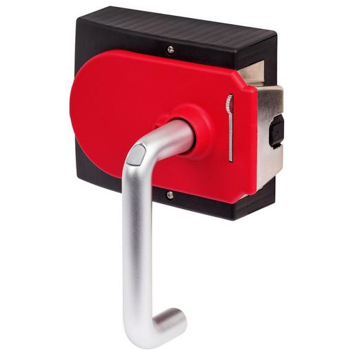 RiegelzungePer Transponder wird die Riegelzunge sicher erkannt, sobald sie im Auswertemodul eingeführt ist.SperreinsatzFür Reinigung und Service kann die Riegelzunge mit max. 3 Schlössern blockiert werden.TürgriffDie MGB verfügt über einen stabilen Türgriff, der in 90°-Schritten gedreht werden kann, passend zu allen Anbausituationen. Die Betätigungsrichtung ist für links- und rechts angeschlagene Türen umstellbar.TürknaufAlternativ zum Türgriff kann das Griffmodul auch mit einem Türknauf nachgerüstet werden.