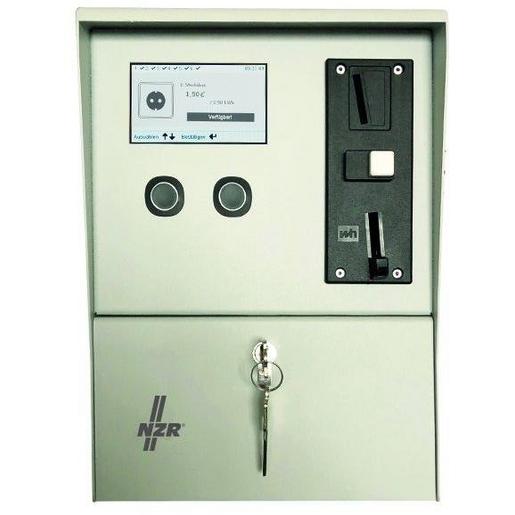 Mehrfach Münzzähler Wechselstrom zeitgesteuert für bis zu 2 Verbraucher inklusive Optionen Münzen- und Geldzählwerk, Betriebsstundenzähler, Schüsselschalter zur geldlosen Nutzung und internem akkustischen Signal (frei einstellbar).Der Münzzähler ist kundenseitig einstellbar. Es können die Freigabezeit und der Betrag eingestellt werden. Nach Einwurf einer Münze erscheint im Display die freigegebene Zeit. Gleichzeitig schaltet das Hauptrelais ein. Der Zeitvorrat wird in Sekundenschritten reduziert. Durch den Einwurf von weiteren Münzen wird die Zeitvorgabe entsprechend addiert. Die Abrechnung erfolgt nach abgelaufener Zeit. Der MMZ verfügt über eine reichhaltige Anzahl an verschiedenen Optionen für unterschiedliche Anwendungsfälle. In der größten Ausführung sind bis zu 2 Verbraucher steuerbar. Zusätzlich sind weitere Optionen für den Betrieb von Waschmaschinen, Trocknern und Solarien verfügbar. Dreh- oder Wechselstrom ist über den MMZ-Configurator auswählbar. Bis zu 6 Installationsschütze (25A) für den gleichzeitigen Betrieb von bis zu 6 Endgeräten, Zeiteinheiten frei konfigurierbar, Hochwertiges TFT Display, Einwurf wahlweise: 0,10 Euro, 0,20 Euro, 0,50 Euro, 1,00 Euro, 2,00 Euro oder 2 versch. Wertmarken (andere Währungen auf Anfrage), Sperrmöglichkeit einzelner Münzen (Werte), die Grundzeit ist einstellbar auf einen maximalen Zeitvorrat von bis zu 48 Stunden, die kleinste einzustellende Zeiteinheit beträgt 1 Sekunde, einfache Zeiteinstellung durch logische Menüführung, zeitabhängige Tarifierung (z.B. Happy Hour Tarif – Option), Aufnahmemenge Münzbehälter: ca. 350 Stück EUR 0,50, pulverbeschichtetes Edelstahlgehäuse (RAL 7035 lichtgrau) mit Profilzylinderschloss, Bedienung des Gerätes durch hochwertige Industrietasten, elektronischer Mehrfachmünzprüfer, Betriebsstundenzähler für angeschlossene Geräte, zwei Münzzählwerke (eines davon rückstellbar), Geldwertzähler (nicht rückstellbar), einfacher Anschluss über Haubenkonzept und Hutschienenschütze, mehrsprachiges Menü (deutsch/englisch), konfigurierbar über USB-Schnittstelle, Software-Optionen einfach nachrüstbar