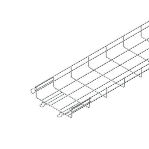 Gitterrinne nach DIN EN 61537, U-förmig, aus Stahldrähten, punktgeschweißt, zur Schnellbefestigung mit angeschweißten Stoßstellenverbindern in den Seiten und im Boden. VDE zertifiziert! Abmessung (ca. Maße) innen Höhe H x Breite B : 54 x 200 mm Längsdraht-Ø : 3,9 mm Bodenlängsdrahtabstand : 50 mm Querdraht-Ø : 3,9 mm Querdrahtabstand : 100 mm Lieferlänge L : 3000 mm Werkstoff : Stahl, galv. verz. nach DIN EN ISO 2081, blaupassiviert
