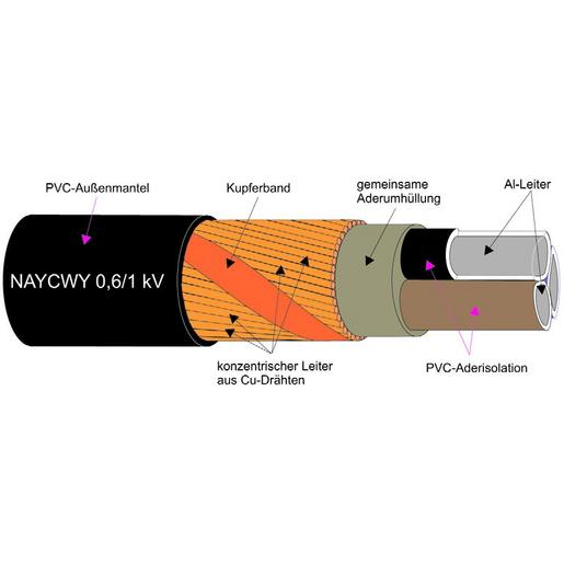 PVC-isoliert mit AL-Leitern und konzentrischem Cu-Leiter in CEANDER-Form.