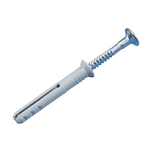 Sicher und zeitsparend, Nylondübel mit Einschlagschraube. Nageldübel kann zur Neujustierung herausgeschraubt werden. Lange Abkantezone für optimalen Grip. Wird vormontiert geliefert, um den Verlust der Nägel zu vermeiden.