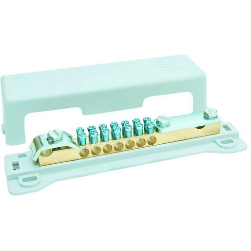 Potentialausgleichsschienen (Erdung) für Anwendungen im Bereich des Hausanschlusses bis 100 A VDE 0618, Teil 1: Betriebsmittel für den Potentialausgleich Potentialausgleichsschiene (PAS) für den Hauptpotentialausgleich Klemmkörper: Messing, Klemmschrauben: Stahl, verzinkt Sockel und Abdeckung: Kunststoff PP, schlagzäh 7 Buchsenklemmen für Rundleiter 2,5 … 25 mm², 2 (zweireihig) Klemmschrauben, Klemmlasche für Flachleiter 30 x 4 mm oder Rundleiter ø 8…10 mm, Klemmbügel für Rundleiter ø 25 …. 50 mm² Schraubbefestigung Schlagfeste Abdeckung zum Schutz vor scharfen Kanten an den Schnittstellen der Zuleitungen Ecken gerundet Alle Werkstoffe und eingesetzte Verfahren RoHS-konform