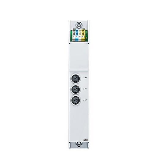 Umschalt- und Sicherungsmodul für die Versorgung der internen oder externen SUB Stationen. Pro Modul: 8 A Sicherung für 1000 VA/750 W