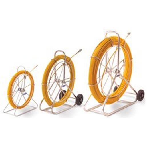 Röhrenschlange mit extra starkem Kern aus hochfestem Glasfiber und Schutzmantel aus gleitfähigem Polypropylen mit sehr hoher Schubstabilität geringe Bruchgefahr baustellengerechte Konstruktion galvanisierte/feuerverzinkte Haspel ab Haspel-Ø 800 mm mit Rädern rollengelagerter Bandauslauf sichere Haspel-Bremse hochbelastbare Verklebung der Anfangshülse ES 9-80 Ersatzschlange Ø 9 mm, 80 m