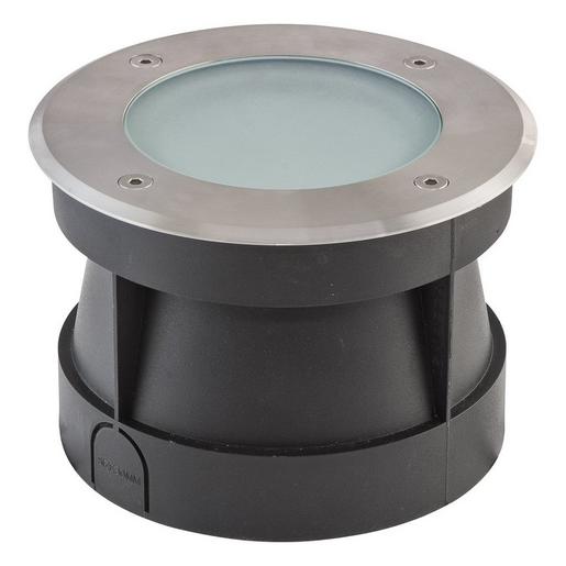 Der Leuchtenkörper der Bodeneinbauleuchte ist aus massivem Aluminium gefertigt, der obere Abdeckring hingegen aus V2A-Edelstahl und kann für vielfältige Anwendungen im Außenbereich verwendet werden. Die Montage erfolgt mittels der im Lieferumfang befindlichen Kunststoff-Einbauhülse. Da der COB-LED-Chip fest verbaut ist, fallen keine zusätzlichen Kosten für Leuchtmittel an. Ebenso entstehen auch keine zusätzlichen Kosten für ein Vorschaltgerät, da der Anschluss direkt an die 230V-Zuleitung erfolgt. Zusätzlich befindet sich auf der Unterseite ein selbstentlüftendes Ventil. Die maximale Überfahrgeschwindigkeit beträgt 20km/h. Optional ist die Glasabdeckung in klar erhältlich (PC6710888), wodurch sich die Lichtausbeute auf 1100lm erhöht. Die Leuchte hat eine 0,50m lange Anschlussleitung (ÖLFLEX CLASSIC 110 BLACK 3 x 0,75mm²) mit freien Aderenden.
