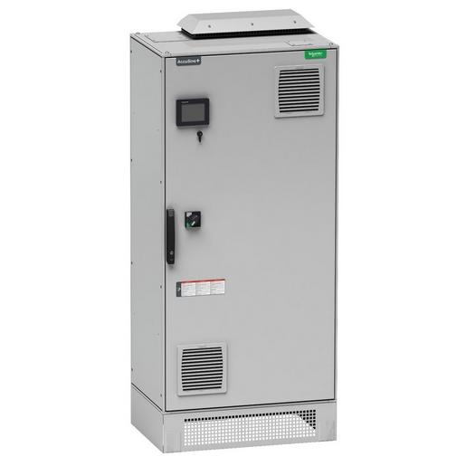 Aktiver Oberschwingungsfilter aus der AccuSine-Familie, die zur Stabilisierung elektrischer Netze beitragen, indem sie Oberschwingungen reduzieren, den Blindleistungsfaktor korrigiern und einen Lastausgleich ermöglichen. Es ist speziell für anspruchsvolle elektrische Bedingungen, für schwere industrielle Anwendungen und für kritische Umgebungen konzipiert. Diese Version hat die Schutzart IP54 und kann an Niederspannungsnetze mit einer Spannung von 380 Volt bis 480 Volt angeschlossen werden. Esist für einen Standardausgangsstrom von 300 Ampere spezifiziert. Das Gehäuse ist bodenstehend, ermöglicht die Kabeleinführung von oben oder unten und wird in RAL7035 Lichtgrau geliefert. Dieser aktive Netzfilter erreicht eine über den Normen liegende Leistung THDi kleiner oder gleich 3%, ist zertifiziert nach CE, UL, IBC 2015 AC156, EAC, RCM. Es entspricht IEC 62477-1, IEC 61000-6-2, IEC 61000-6-4, IEC 61439-1, UL508 und IEEE 519-2014. Bis zu 10 Geräte unterschiedlicher Leistung können parallel geschaltet werden, um eine maximale Kompensation von 3000A pro Stromwandlersatz zu erreichen. Die Außenabmessungen des Gehäuses betragen 900 Millimeter in der Breite, 600 Millimeter in der Tiefe, 2100 Millimeter in der Höhe und das Produktgewicht 436 kg.