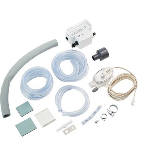 Die Kondensatpumpe besteht aus dem Pumpenmodul und dem Sensorblock zur Ableitung von Kondensat, falls kein Abtransport über eine Gefällstrecke möglich ist. Das Pumpenmodul befindet sich in einem Kunststoffgehäuse, der Netzanschluss erfolgt über eine Schraubklemme direkt am Pumpenmodul.